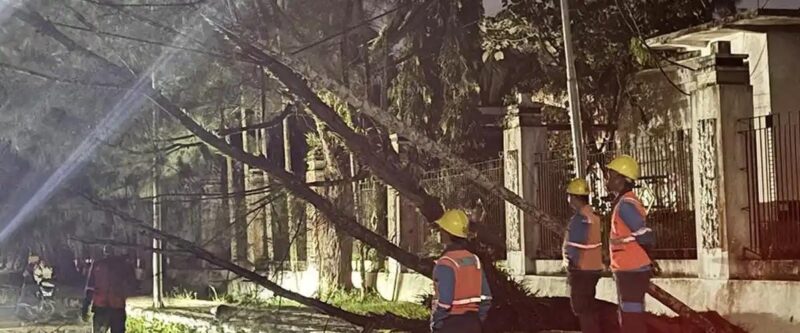 Batang pohon tersebut ambruk ke arah kabel listrik yang melintas di kawasan tersebut. Akibatnya, batang dan ranting pohon menekan kabel hingga menimbulkan percikan api di lokasi. Fenomena ini memicu reaksi panik dari warga yang menyaksikan peristiwa secara langsung.