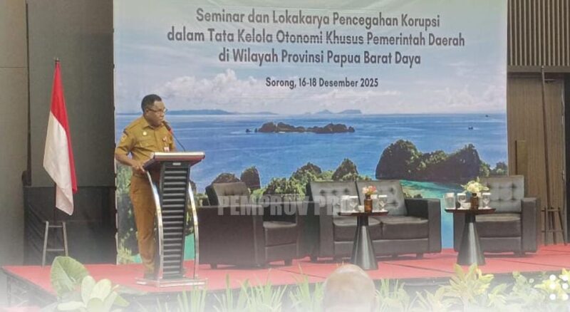 “Pemerintah Provinsi Papua Barat Daya mendukung penuh upaya pencegahan korupsi melalui penguatan sistem perencanaan dan penganggaran yang transparan dan akuntabel. Selain itu, pemerintah juga meningkatkan kapasitas ASN yang profesional serta mengoptimalkan pengawasan internal,” ujar Yakob Kareth saat membuka Lokakarya Pencegahan Korupsi dalam Tata Kelola Otonomi Khusus Pemerintah Daerah, di Aston Hotel, Kota Sorong, Selasa (16/12).