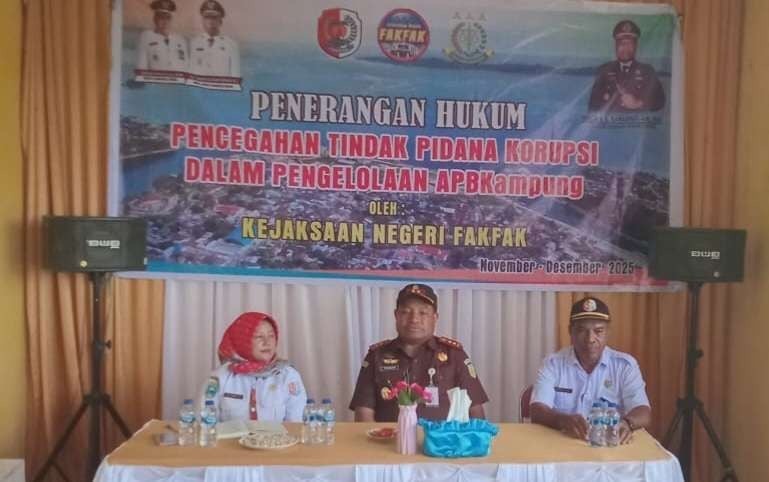 InfoMatoa, (Fakfak) | Kolaborasi antara Kejaksaan Negeri Fakfak dan Dinas Pemberdayaan Masyarakat dan Kampung (DPMK) kembali diperkuat melalui kegiatan penerangan hukum bertema pencegahan tindak pidana korporasi dalam pengelolaan APBK Kampung. DPMK menggelar kegiatan tersebut di Distrik Bhamdandara dan Distrik Bomberay, Rabu (19/11), dengan melibatkan perangkat kampung dari wilayah setempat.