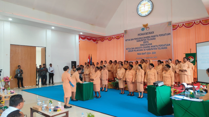 InfoMatoa, (Tolikara) | Pengukuhan Ketua dan Pengurus Dharma Wanita Persatuan (DWP) Kabupaten Tolikara serta Ketua dan Anggota Unsur Pelaksana DWP masa bakti 2024–2029 resmi dilaksanakan di Aula Gidi, Karubaga, Senin (15/9). Acara ini dipimpin oleh Sekretaris Daerah Kabupaten Tolikara, Dr. Yosua Noak Douw, S.Sos., M.Si., M.A.