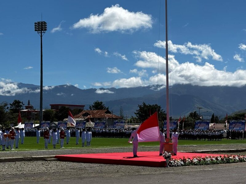 InfoMatoa, (Wamena) | Peringatan HUT ke-80 Proklamasi Kemerdekaan Republik Indonesia tingkat Provinsi Papua Pegunungan digelar dengan khidmat di Stadion Lapangan Pendidikan, Distrik Wamena, (17/8).