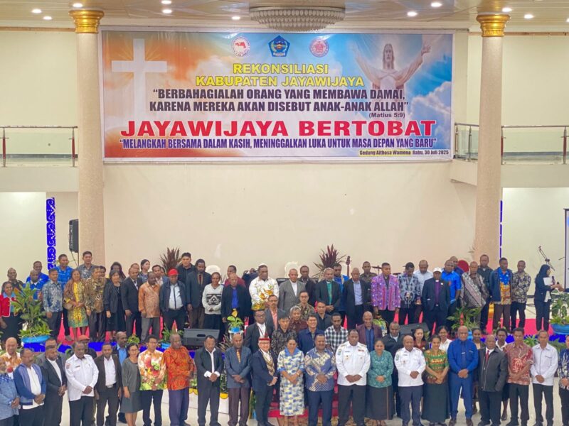 InfoMatoa, (Jayawijaya) | Pemerintah Kabupaten Jayawijaya bersama berbagai elemen masyarakat dan keagamaan menggelar kegiatan Rekonsiliasi Daerah pada Selasa, 30 Juli 2025, di Gedung Aithousa, Wamena. Kegiatan yang mengangkat tema “Melangkah Bersama Dalam Kasih, Meninggalkan Luka Untuk Masa Depan Yang Baru” ini dimaknai sebagai momentum kebangkitan sosial dan spiritual masyarakat Jayawijaya pasca berbagai dinamika masa lalu.