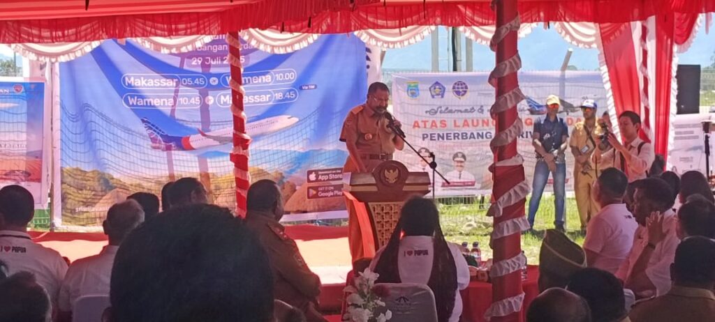 Dalam sambutannya, Gubernur menyampaikan bahwa penerbangan langsung ini merupakan jawaban atas aspirasi masyarakat Pegunungan yang mendambakan akses transportasi lebih efisien.