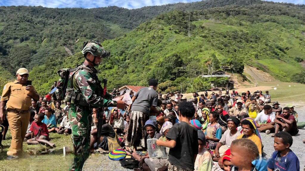 Proses pembagian dilakukan langsung oleh personel Pos Okyop dan disambut antusias oleh warga dari berbagai usia. Kepala Kampung Okyop, Bapak Undi Kalakmabin, turut mendampingi pembagian dan menyampaikan apresiasi atas perhatian yang diberikan oleh Satgas.