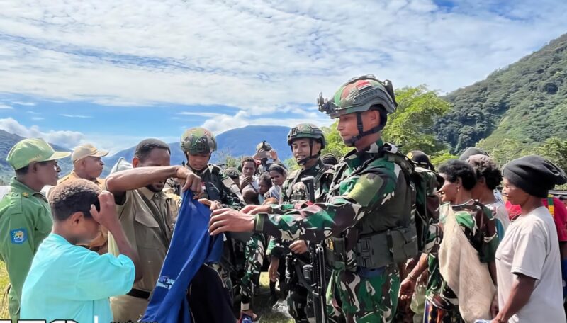 InfoMatoa, (Pegunungan Bintang) | Pos Okyop dari Satgas Pamtas Yonif 753/AVT melaksanakan kegiatan bakti sosial berupa pembagian pakaian layak pakai kepada masyarakat Kampung Okyop, Distrik Kiwirok Timur, Kabupaten Pegunungan Bintang, pada 30 Juli 2025.