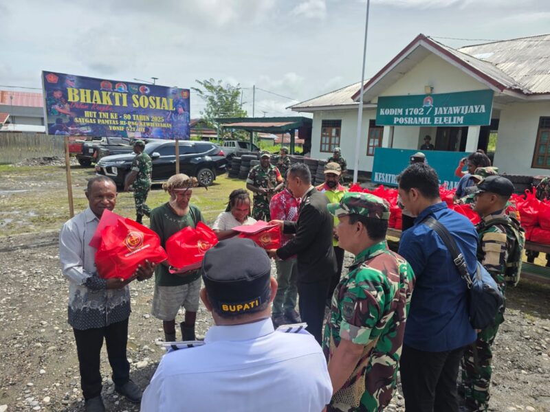 InfoMatoa, (Yalimo) | Dalam rangka memperingati Hari Ulang Tahun (HUT) ke-80 Tentara Nasional Indonesia (TNI), jajaran TNI bersama aparat keamanan, pemerintah daerah, tokoh masyarakat, dan tokoh agama menggelar kegiatan Bhakti Sosial dan Pemeriksaan Kesehatan di Pos Ramil Elelim, Jalan Trans Jayapura–Wamena, Distrik Elelim, Kabupaten Yalimo (1/10)