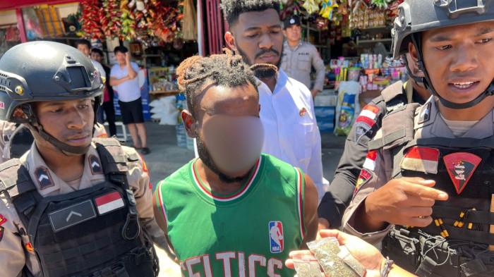 InfoMatoa, (Jayawijaya) | Kepolisian Resor Jayawijaya menciduk seorang pemuda berinisial EU yang diduga sebagai pengguna sekaligus pengedar ganja dalam razia yang digelar di dua titik berbeda, Senin (29/9). Razia dipimpin Kasat Resnarkoba IPTU J.B. Saragih dengan sasaran kawasan Pasar Wouma dan perempatan Jalan SD Percobaan–Jalan Pattimura. Demikian dilaporkan Tribun-Papua.com.