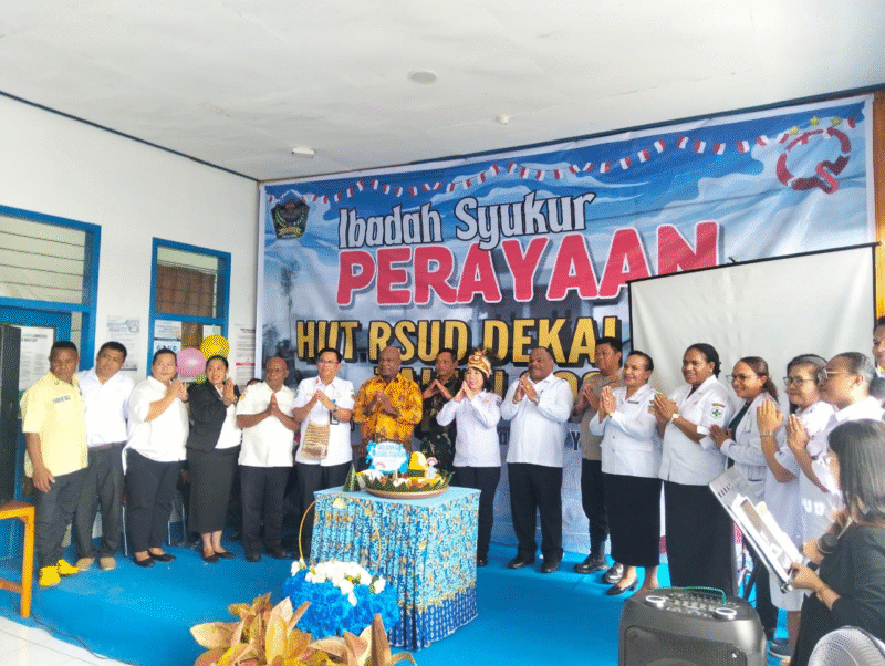 Perayaan HUT membawa tema “RSUD Dekai Maju Bersama untuk Yahukimo Sehat” dan dipimpin oleh Direktur RSUD Dekai, dr. Rosalyn C. Jane.