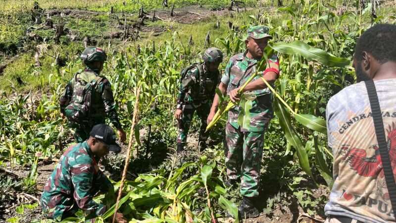 Swasembada Pangan Satgas Yonif 521/DY Membantu Panen Jagung Masyarakat di Distrik Kelila