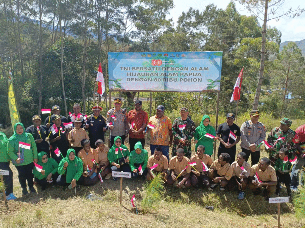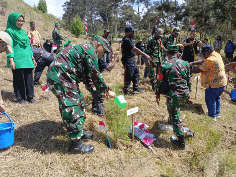 Mengusung tema “TNI Bersatu dengan Alam Papua, Hijaukan Alam Papua dengan 80 Ribu Pohon”, kegiatan ini dipimpin langsung Dandim 1713/LJ Letkol Inf Rakhmat Shaleh Siregar. Sekitar 50 peserta turut hadir, termasuk Bupati Lanny Jaya Aletinus Yigibalom, Wakil Bupati Fredi Ginia Tabuni, Kapolres Lanny Jaya Kompol Nursalam Saka, jajaran pejabat daerah, anggota Persit KCK, serta siswa SMP Negeri 1 Tiom.