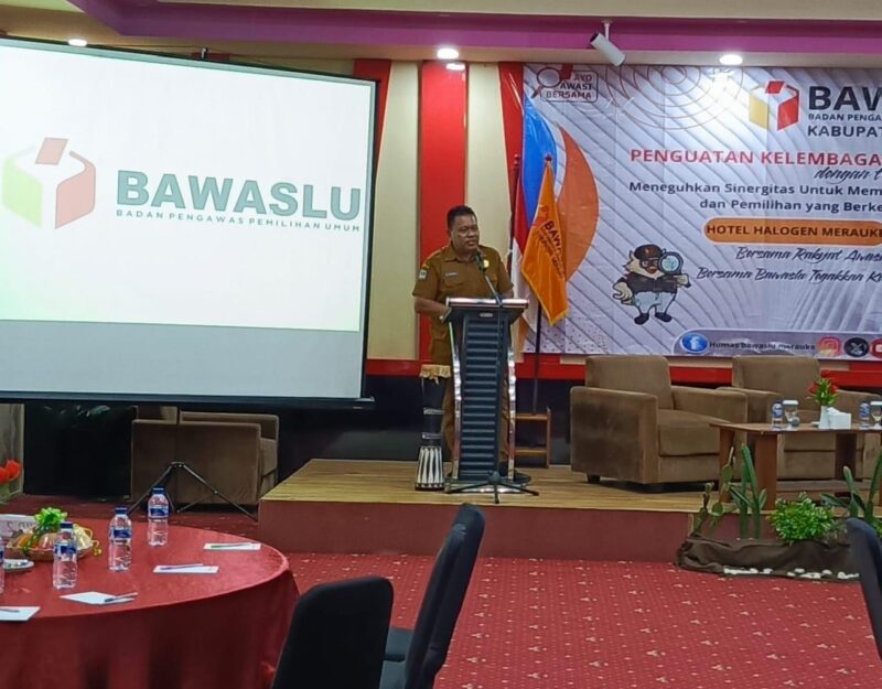 InfoMatoa, (Merauke) | Badan Pengawas Pemilu (Bawaslu) Provinsi Papua Selatan menggelar kegiatan Penguatan Kelembagaan Pengawas Pemilu dengan tema “Meneguhkan Sinergitas untuk Membangun Demokrasi Menuju Pemilu dan Pemilihan yang Berkeadilan dan Bermartabat.” Kegiatan ini berlangsung di Ruang Cenderawasih, Hotel Halogen, Jalan Brawijaya, Distrik Merauke, pada Senin (27/10) pagi.