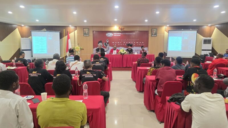 InfoMato, (Merauke) | Dalam rangka memperingati Hari Pahlawan 10 November 2025, Dewan Pimpinan Daerah Barisan Merah Putih (DPD BMP) Provinsi Papua Selatan menggelar Dialog Kebangsaan. Tema kegiatan ini adalah “Membangun Papua Selatan Maju, Sejahtera dan Berdaulat Menuju Indonesia Emas 2045”. Kegiatan berlangsung di Serui Ballroom Hotel Sunnyday, Merauke, dan dihadiri tokoh adat, agama, masyarakat, pemuda, serta mahasiswa, Senin (11/11).