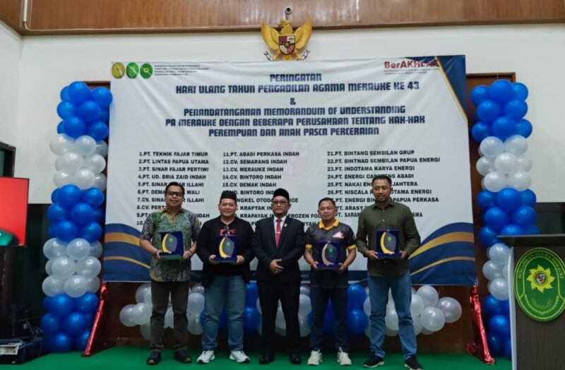 InfoMatoa, (Merauke) | Pengadilan Agama (PA) Merauke menggelar kegiatan spesial dalam rangka memperingati Hari Ulang Tahun (HUT) ke-43. Pengadilan Agama Merauke menyelenggarakan HUT sekaligus menandatangani MoU bersama sejumlah perusahaan di Kabupaten Merauke. Kegiatan berlangsung pada Selasa, 28 Oktober 2025, di Ruang Sidang Pertama Pengadilan Agama Merauke, Jalan TMP Trikora, Distrik Merauke, Provinsi Papua Selatan.