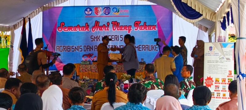 InfoMatoa, (Merauke) | HUT SMK Negeri 5 Merauke ke-21 digelar dengan semangat kebersamaan dan inovasi. Siswa, guru, dan staf sekolah mengisi kegiatan dengan berbagai acara kreatif. Selain itu, mereka menunjukkan kepedulian sosial dan membangun karakter generasi muda.