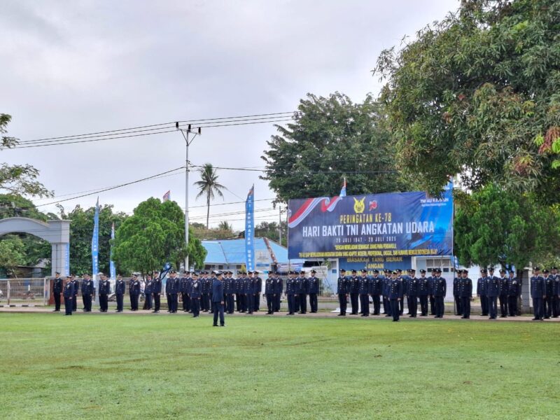 InfoMatoa, (Merauke) | Pangkalan TNI AU Johanes Abraham Dimara, Merauke, Papua Selatan, menggelar Upacara Peringatan Ke-78 Hari Bakti TNI Angkatan Udara pada Senin pagi (29/7) dengan penuh khidmat. Kegiatan ini berlangsung di Lapangan Mako Lanud mulai pukul 07.18 hingga 07.55 WIT dan diikuti oleh jajaran personel TNI AU serta sejumlah tamu undangan dari berbagai instansi.