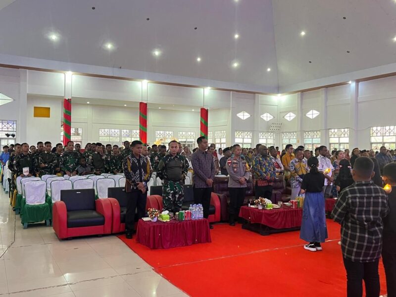InfoMatoa, (Mappi) | Pemerintah Daerah Kabupaten Mappi menggelar Perayaan Natal Bersama Tahun 2025. Acara ini melibatkan unsur TNI/Polri serta masyarakat luas. Mereka berkumpul di Gedung Qhaindau Uri, Jalan Bawape, Kepi pada Selasa (30/12). Distrik Obaa menjadi lokasi pusat perayaan keagamaan tersebut.