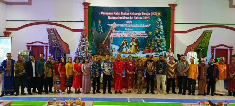 InfoMatoa, (Merauke) | Ikatan Keluarga Toraja (IKT) Kabupaten Merauke menggelar Silaturahmi dalam rangka Perayaan Natal IKT Tahun 2025 di Gedung Serba Guna Rose Permai, Merauke, Papua Selatan, Jumat (12/12). Kegiatan ini mengusung tema “Allah Hadir Untuk Menyelamatkan Keluarga” dan menghadirkan sekitar 300 peserta. Ketua Panitia, Yohanes Tato, S.Sos., M.T., memimpin langsung kegiatan tersebut.