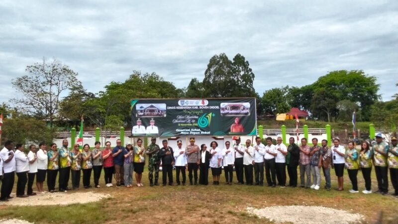 InfoMatoa, (Boven Digoel) | Dalam rangka memperingati Hari Kesehatan Nasional (HKN) ke-61, Pemerintah Kabupaten Boven Digoel melalui Dinas Kesehatan menggelar Apel Bersama di Halaman Kantor Dinas Kesehatan, Jl. Trans Papua Km.05, Kampung Sokanggo, Distrik Mandobo. Wakil Bupati Drs. Marlinus memimpin langsung kegiatan bertema “Generasi Sehat, Masa Depan Hebat” tersebut. Sekitar 100 peserta dari unsur pemerintah, TNI-Polri, tenaga kesehatan, dan masyarakat setempat turut hadir dalam kegiatan tersebut.