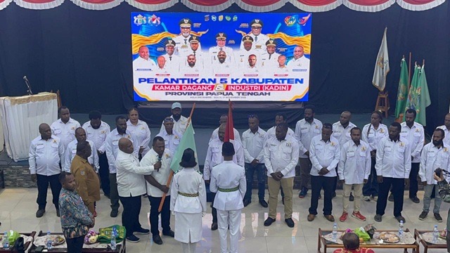 InfoMatoa, (Nabire) | Ketua Kamar Dagang dan Industri (Kadin) Provinsi Papua Tengah, Alexander Gobai, melantik lima kepengurusan Kadin kabupaten—Intan Jaya, Dogiyai, Deiyai, Puncak, dan Paniai—di LPP RRI Nabire, Senin (17/11).