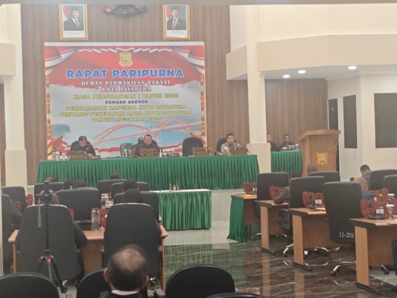 InfoMatoa, (Kota Jayapura) | Dewan Perwakilan Rakyat (DPR) Kota Jayapura secara resmi mengesahkan Rancangan Peraturan Daerah (Raperda) tentang Anggaran Pendapatan dan Belanja Daerah (APBD) Kota Jayapura Tahun Anggaran 2026. Ketua DPR Kota Jayapura, Theos Revelino Beniqno Ajomi, S. Sos, memimpin penutupan Rapat Paripurna Masa Persidangan I tahun 2025 dengan agenda penetapan APBD pada Senin (24/11) di Ruang Rapat Paripurna DPR setempat.