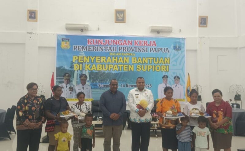 InfoMatoa, (Supiori) | Kunjungan kerja Pemerintah Provinsi Papua kembali menyentuh Kabupaten Supiori. Bertempat di Aula Sasana Krida Kantor Bupati Supiori, (14/11), Plh. Sekretaris Daerah Provinsi Papua, Yohanes Walilo, memimpin secara langsung agenda penyerahan bantuan sosial kepada masyarakat kurang mampu. Kegiatan ini disambut antusias oleh pemerintah daerah Supiori dan masyarakat yang hadir.