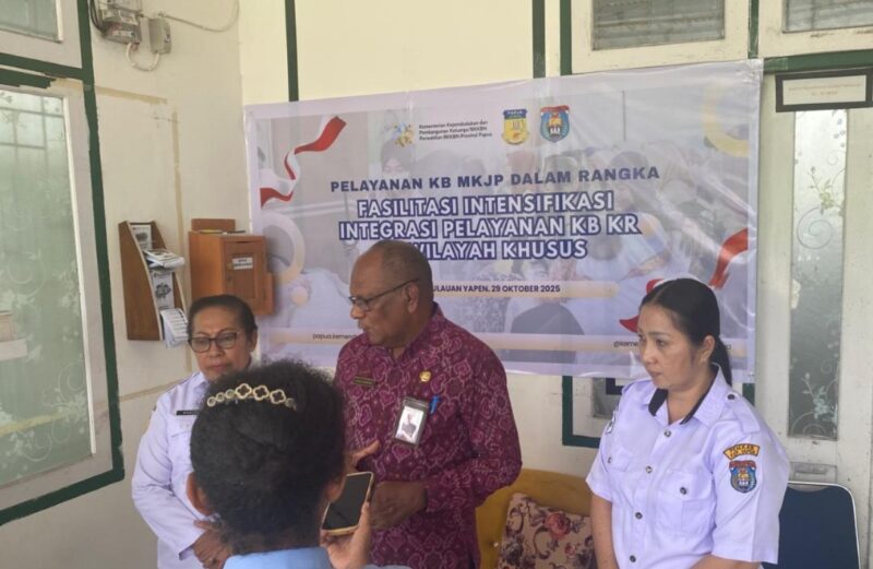 InfoMatoa, (Kep. Yapen) | Badan Kependudukan dan Keluarga Berencana Nasional (BKKBN) Provinsi Papua terus memperkuat pelayanan kesehatan keluarga di wilayah kepulauan. Upaya ini terlihat dari kegiatan monitoring intensifikasi dan integrasi Pelayanan Keluarga Berencana dan Kesehatan Reproduksi (KBKR) yang digelar di Puskesmas Serui Kota, Kabupaten Kepulauan Yapen, Selasa (29/10).
