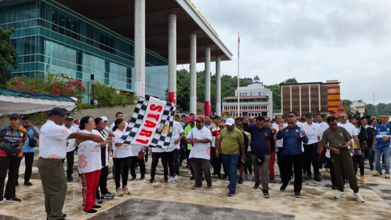 Kegiatan diawali dengan apel peserta jalan sehat, doa bersama, dan pelepasan kontingen tarik tambang Papua yang akan berlaga mewakili Indonesia pada ajang Sea-Games 2025 di Thailand.