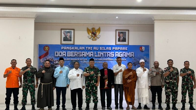 InfoMatoa, (Kab. Jayapura) | Dalam rangka memperingati Hari Ulang Tahun ke-80 Tentara Nasional Indonesia (TNI), Lanud Silas Papare Jayapura menggelar Doa Bersama Lintas Agama di Gedung Serba Guna Lanud Silas Papare, Distrik Sentani, Kabupaten Jayapura, (24/9).