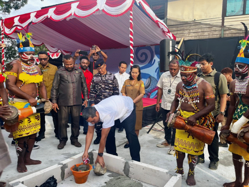 Pembangunan resmi dimulai melalui seremoni peletakan batu pertama, dihadiri Asisten II Pemerintah Kota Jayapura Widy Hartati, DPW Barisan Merah Putih RI Max Abner Ohee, Ketua Barisan Merah Putih Papua Yery Stenli Hamadi, Forkopimda Kota Jayapura, serta tokoh masyarakat.