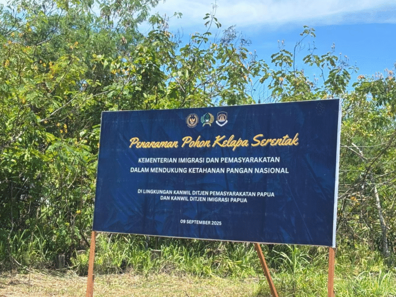 InfoMatoa, (Keerom) | Lembaga Pemasyarakatan (Lapas) Kelas II B Keerom melaksanakan kegiatan penanaman pohon kelapa serentak secara virtual yang dipandu langsung oleh Menteri Imigrasi dan Pemasyarakatan RI, Jenderal Polisi (Purn) Drs. Agus Andrianto, S.H., M.H. Kegiatan ini merupakan bagian dari program nasional ketahanan pangan yang diinisiasi Presiden Republik Indonesia, (9/9).