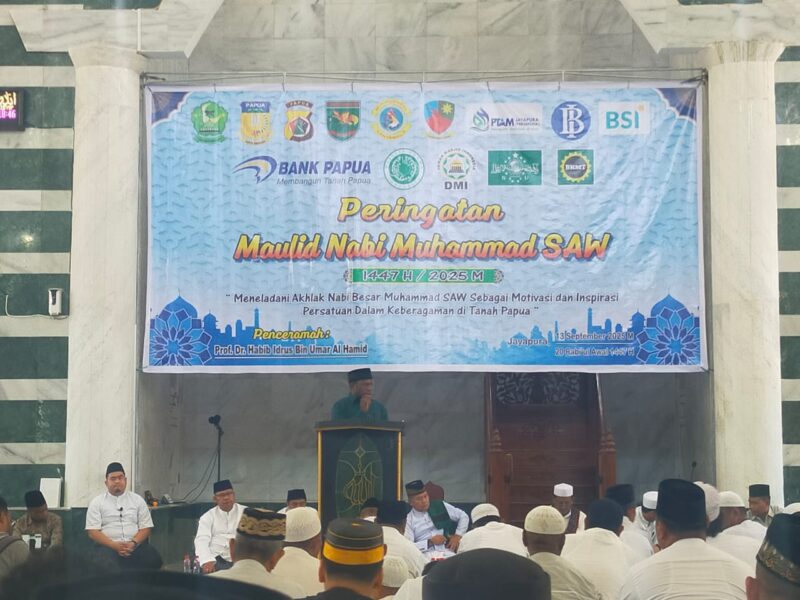 InfoMatoa, (Kota Jayapura) | Bertempat di Masjid Raya Baiturrahim, Distrik Jayapura Utara, Kota Jayapura, dilaksanakan peringatan Maulid Nabi Muhammad SAW 1447 H/2025 M dengan tema “Meneladani Akhlak Nabi Besar Muhammad SAW sebagai Motivasi dan Inspirasi Persatuan dalam Keberagaman di Tanah Papua”, Sabtu (13/9).
