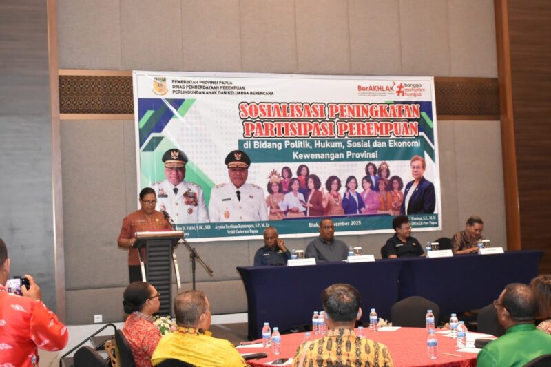 InfoMatoa, (Biak Numfor) | Pemerintah Provinsi Papua melalui Dinas Pemberdayaan Perempuan, Perlindungan Anak, dan Keluarga Berencana (DP3AKB) secara aktif menggelar sosialisasi untuk meningkatkan partisipasi perempuan di berbagai sektor strategis. Program yang berfokus pada pendidikan politik ini dilaksanakan di Kabupaten Biak Numfor, Jumat (14/11).