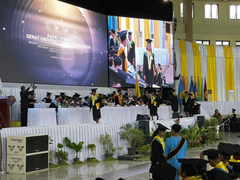 InfoMatoa, (Kota Jayapura) | Universitas Cenderawasih (Uncen) menggelar Rapat Terbuka Senat dalam rangka wisuda Program Doktor, Magister, Sarjana, dan Diploma Periode III Tahun 2025 di Auditorium Uncen Abepura,(28/8).